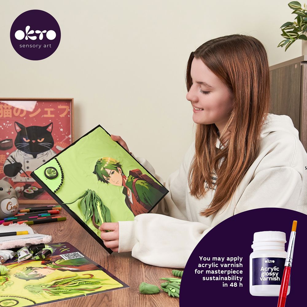 Eco friendly light jumping clay The Okto Air Clay series of light magic clay gives you the ability to create shapes that solidify in the open air during hours and keep their shape. After drying, the product acquires elasticity and a matte effect. Recommended for children above 5 years old. Light, pleasant plasticine Okto Air Clay will open the world of funny fantastic characters, original jewellery, souvenirs and entertaining educational game. The clay can jump! Only natural ingredients. Does not stick to the hands, does not leave colour traces, easily assembles from solid surfaces. Innovative color mixing technology.
